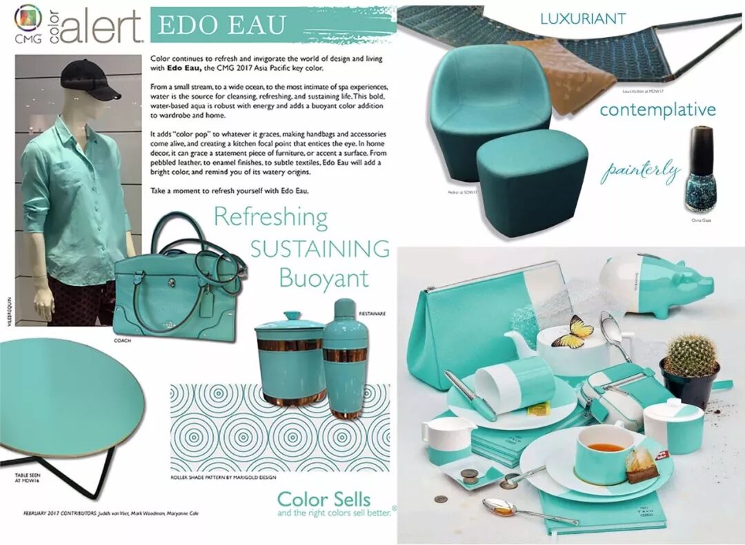 在近来三年时间里,这个跟水文化紧密相联的颜色频频上榜国际流行色,2015年国际非赢利色彩营销机构CMG将此色定为2017年的亚太区流行主色,CMG称:这是一个凝思自然的色彩,充满水元素的涤净力量,它为忙碌的现代生活带来清平。如今这个色彩在家居中频频出现,饰品、家具、织物、艺术画等,是室内各式木材、清爽白及鸽灰类的极好衬托色;它同样在时尚界常见不鲜,从正装礼服、衬衣到饰品,业成为一种超越年龄与性别界线的颜色。而Tiffany品牌新推出的2018家饰系烈再次备受好评。