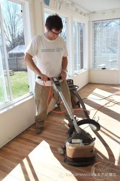 选择合适型号的打磨机,以免磨伤木板的纹理及保护好边边角角;打磨前确保地板上所有钉子经已拔除。