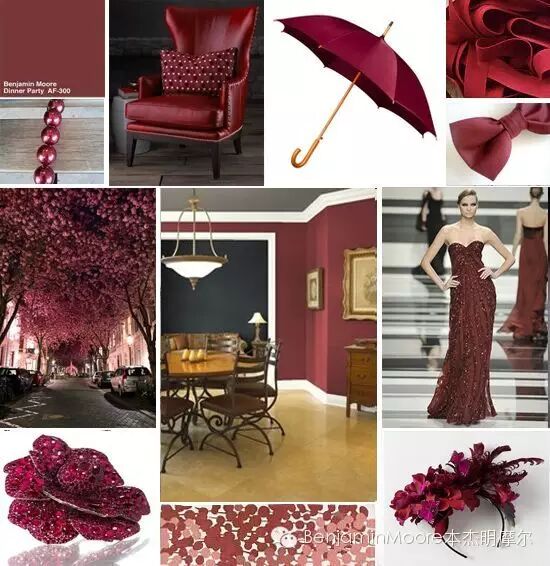一种带黑色调的老成深红色,它可以创造出空间的深度及带出戏剧化效果,很适宜用于举办盛宴的空间。