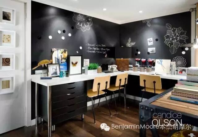 C.O.-想为孩子们创建良好的学习环境吗?涂刷一面黑板墙是个不错的选择,于大人小孩都乐趣无穷,除了黑色还有其它的颜色,本杰明摩尔专用黑板漆让人随时随地表达源于生活的灵感火花。Benjamin Moore,Paint like no other.体验精彩非凡的涂装世界!