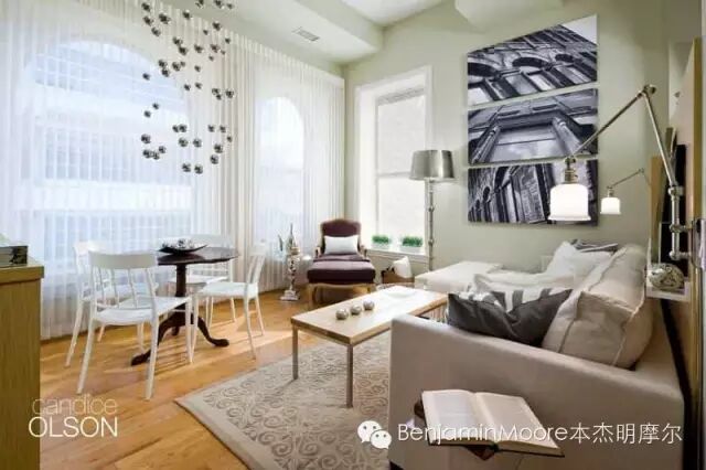 最近加拿大设计师candice olson频频在其Facebook平台上秀新作:用本杰明摩尔涂料2016流行色“Simply White”创作的新案例(见下三图)。