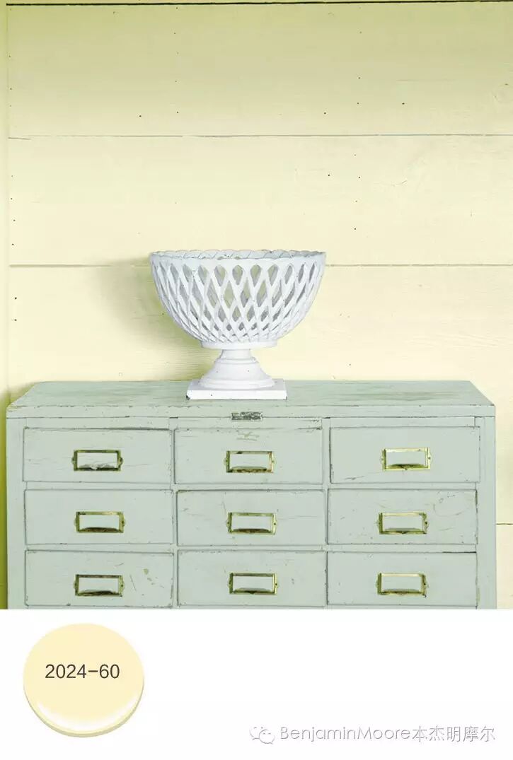将方案的用色限制在3-5种以内。一个好的经验法则是:选择色彩纯度相近的颜色做搭配。在运用本杰明摩尔色卡做配色方案时,可以选择在同一套色卡中选色(避免在多套色卡中挑花了眼),比如本杰明摩尔的“历史色系,简称HC系列”(Historical Colours)或“自由搭色系,简称AF系列”(Affinity Collection),这会是安全的做法,同时这些色卡的颜色也足够丰富,可供选择。