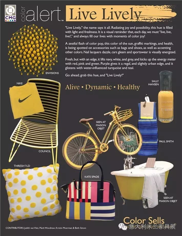 时尚演绎:生动活泼是这个颜色最好的写照,它散发出喜悦和希望,饱蘸着光明与清新,在视觉上每天都提醒着人们:喜悦是生活的天赋,我们必须活着-活着-好好活着!