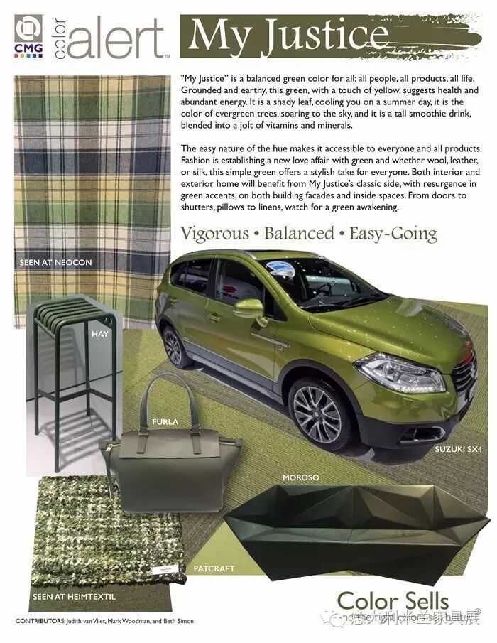 时尚演绎:这个绿色带有一点点黄,意喻健康和蓬勃的能量。像带有阴影的叶子,为炎炎夏日输送清凉;像常青树的颜色,屹立天际;又仿如一杯冰沙饮料,内含人体所需的维生素和矿物质。草绿接地气充满生命力,它适合所有人、所有产品、所有生活方式,也因此被冠以“道法无边”之色。