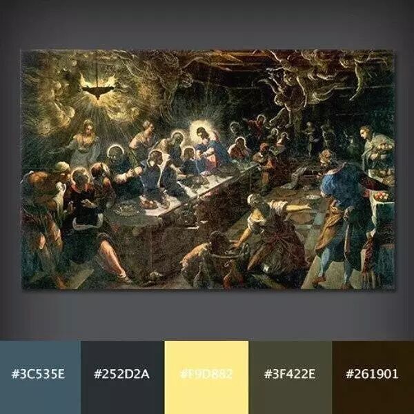 你可能会说:“这不是《最后的晚餐》!?”达芬奇《最后的晚餐》是从16世纪后期才开始流行的,而这是威尼斯画家丁托列托的作品。丁托列托使用强烈的色彩,有趣的视角和疯狂的照明效果来描绘场景,这是绝美的。