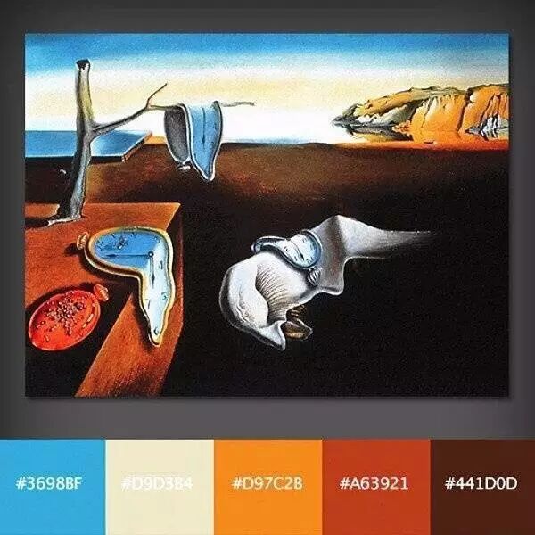 超现实主义是一个令人兴奋的艺术形式,一般是为了描绘某种深层次的概念。这幅1931年非常流行的、由萨尔瓦多·达利创作的油画刻画出时间和空间的相对感。这片充满阴影效果的土地,也是对色彩的伟大研究!