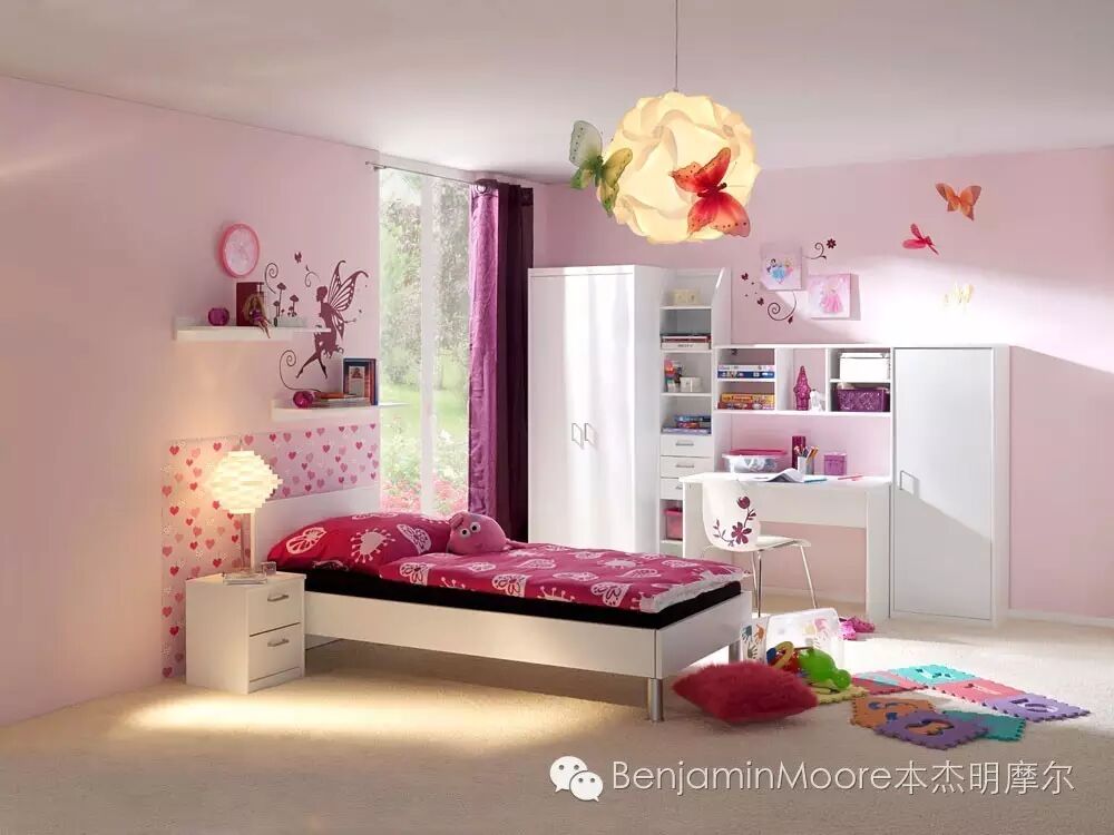 图注:粉粉的阳光女孩,有谁会否定将这样一个水蜜桃布丁色引入女孩房呢?