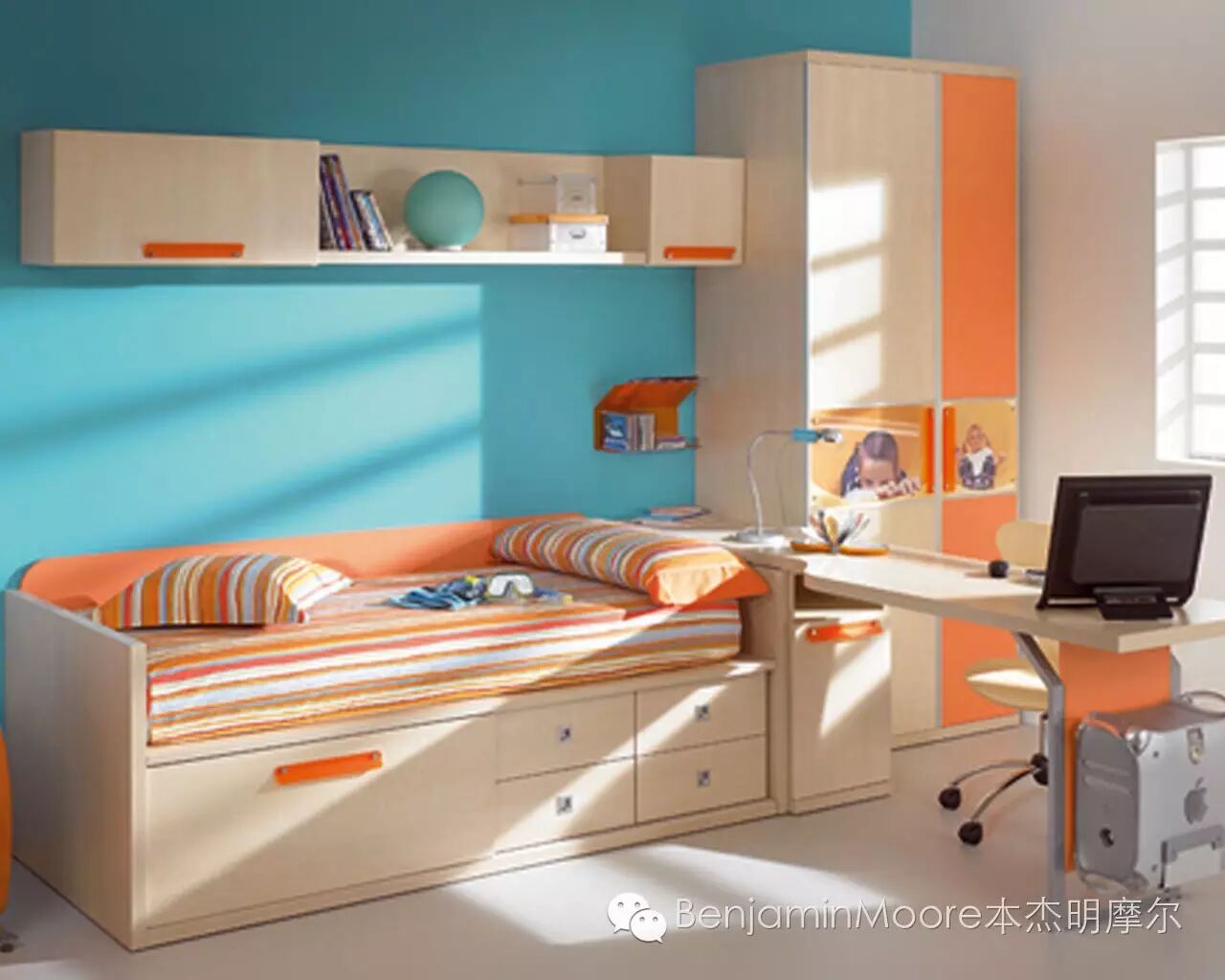 橙色由红、黄调和而成,似乎它和红、黄一样广受欢迎,但在实际的运用上,橙色是经常被人忽略的一个颜色,换个说法是:在房间的涂刷色彩选择上,橙色是遭受误解最多的色彩之一。然而,这个温暖、友好、充满青春气息的颜色,其实很适合孩子们的天性,它能鼓励他们充满自信、性格外向及积极独立。而从社会性格分析论上讲,橙色能让孩子们在交往过程中更无拘无束,促进孩子们的沟通与合作。