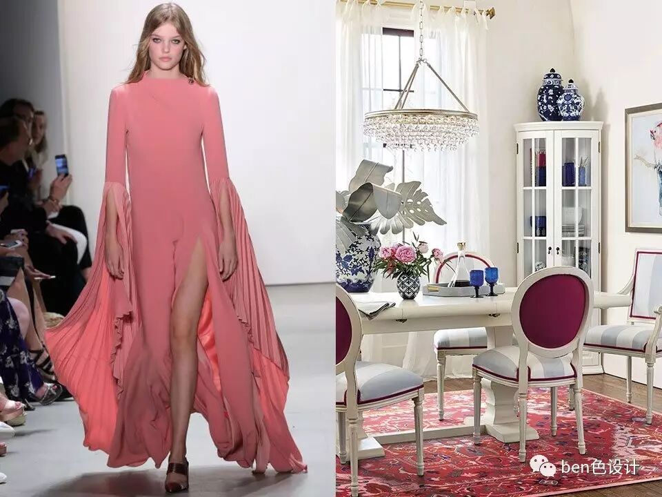 设计师Prabal Gurung的粉红色礼服,他的长褶袖是一次大胆的尝试。而经典剪影的粉色家居装饰地毯,运用到家中,也是一个现代家装中的大胆配饰。