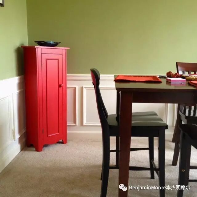绿色是大自然的头号色,也是应用于做单色配色方案的最佳颜色。本杰明摩尔的绿色约600种,在全光谱色彩中您也可以根据不同的情景及情绪需求,按以上的供的5训配色方案进行搭配。
