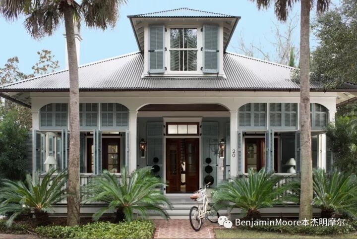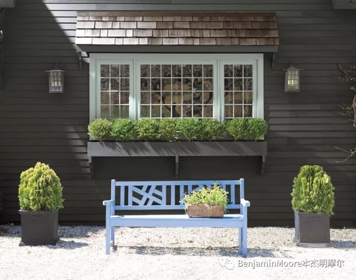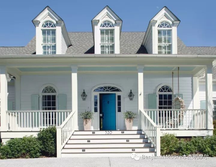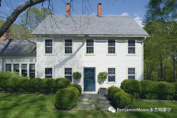 最好的色彩灵感也许就是走出户外放眼四周。选择那些能跟您邻居家的色彩相和谐的色彩,包括建筑风格和周围的自然景色。如果您想选择经典的美式风格室内和建筑色彩,直接在本杰明摩尔的HC色系(历史色系)中选择是最省心的,也会是最准确的。