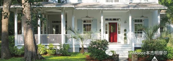 我们先来看一些经典美式风格的户外建筑用色案例,再来分享几个户外用漆的选色建议。