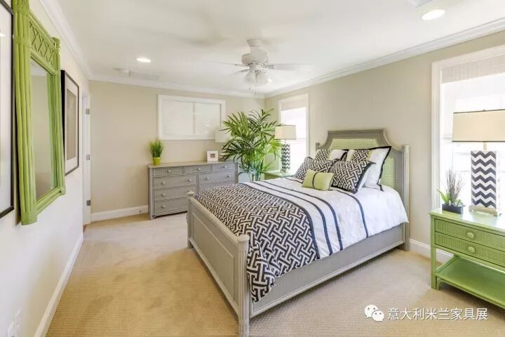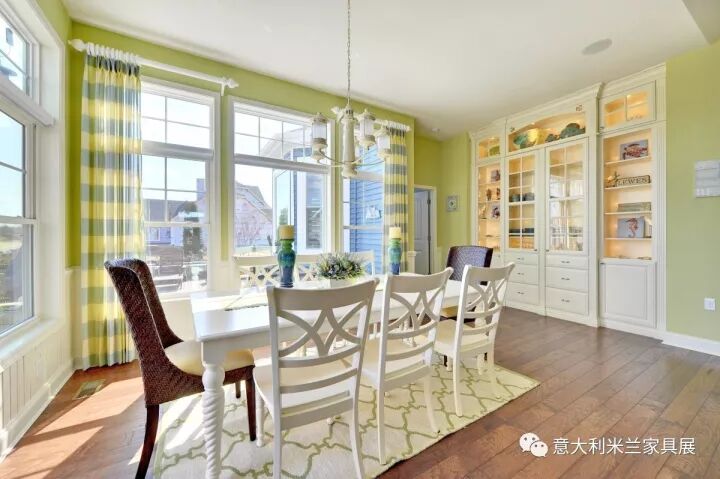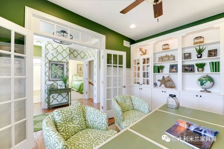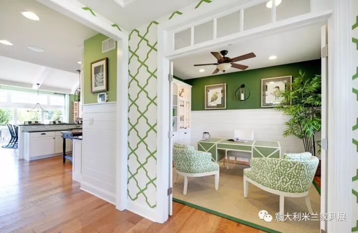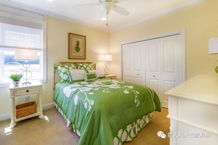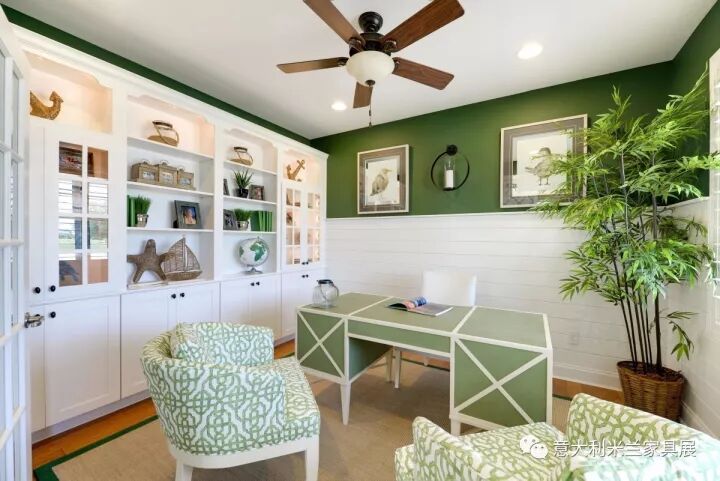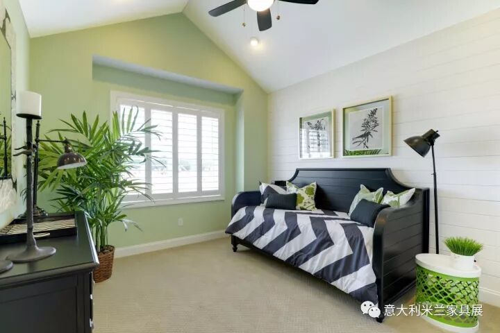 色彩可以反映出主人的个性、品位和文化修养。色彩如果过于突兀则显得不伦不类,破坏整体环境的美感。一个五颜六色的空间易让人产生浮华失重感。本案例以清爽的白色、绿色为主调,绿色是大自然的色彩,象征着和平、青春和新鲜,整体色彩搭配给人带来了春天般的感受。