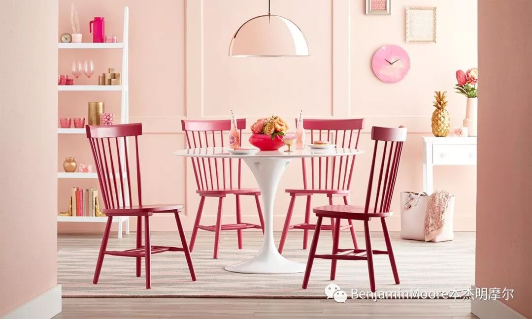 图:粉红客厅,墙面涂料色彩编号:Benjamin Moore 2094-60