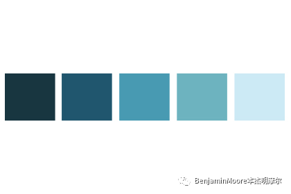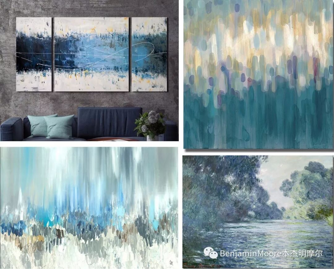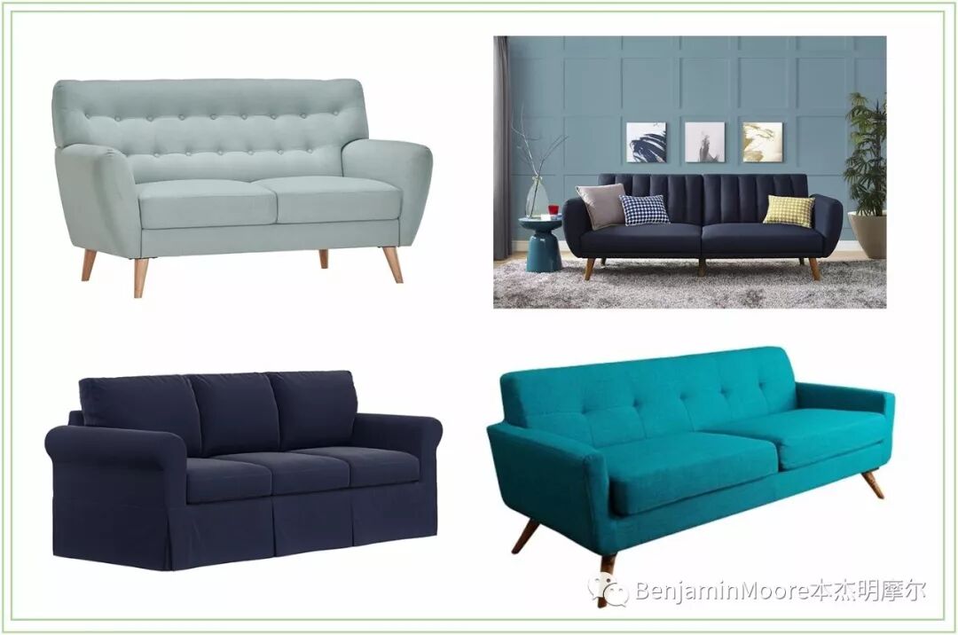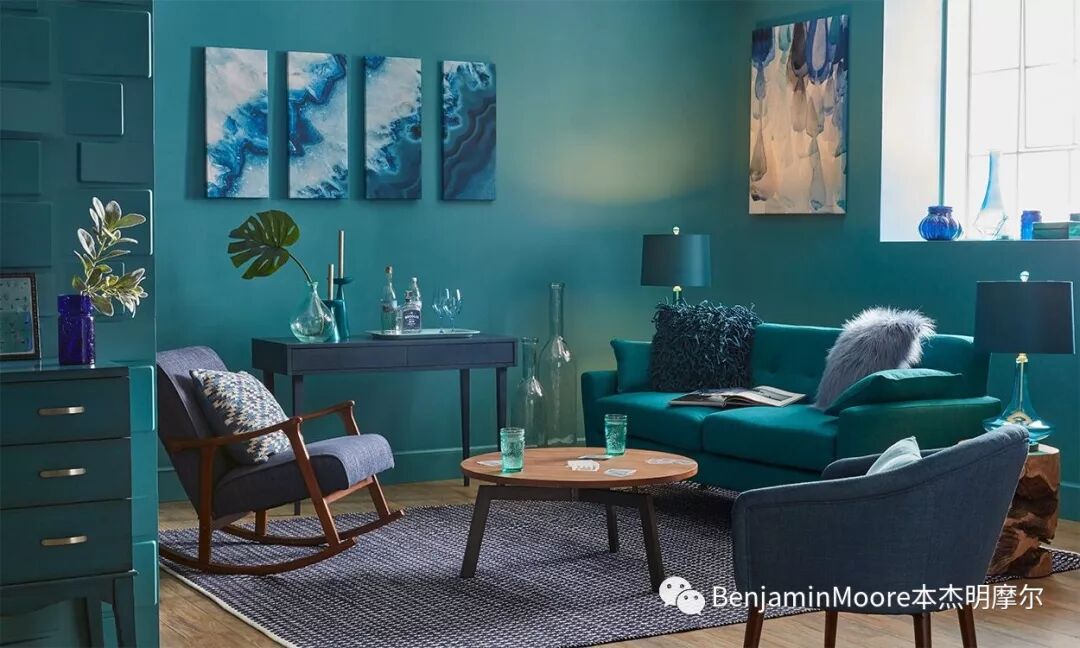 图:蓝色客厅,墙面涂料色彩编号Benjamin Moore 2051-40