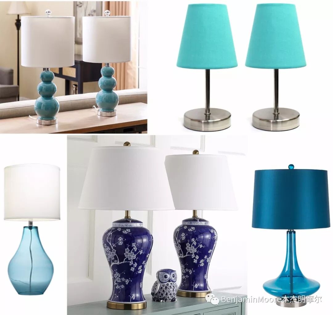 每个房间都需要合适的灯光,台灯是一种很好突显单色配色方案特点的物件,您可以选择蓝色台灯搭配蓝色灯罩,也可以选择搭配中性色的罩,后者能使灯光更好地突显出来。