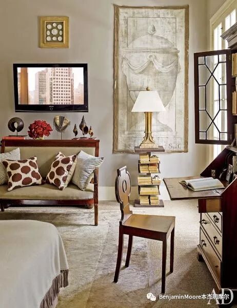 编辑注:由于拍摄光线的缘故,房间中同一张地毯出现较大的色差,同样,墙面颜色与实景颜色也发生较大偏差,但设计师的实际用色编号的确是CC-80。