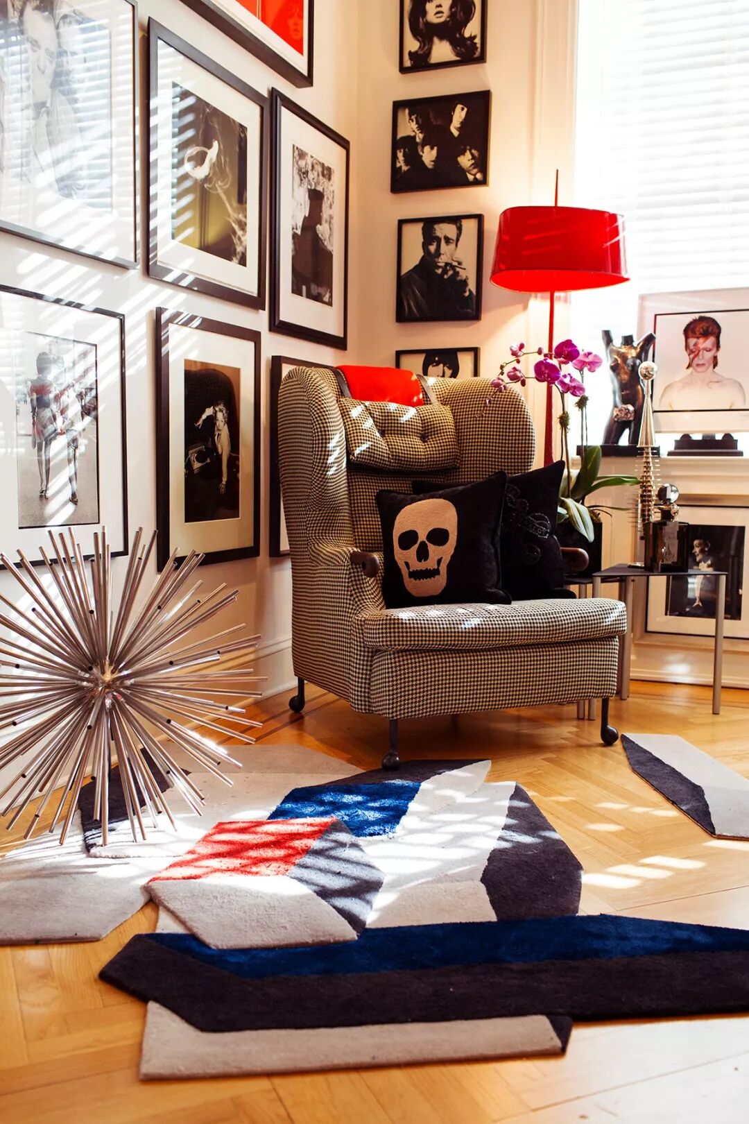 充满艺术气派的客厅珍品如云,包括造型奇特独尊的“手脚椅”,美国艺术家Kenneth Snelson的一尊结构雕塑作品,世界公认的杰出摄影师David Bailey的系列照片作品,粘胶丝绒覆盖着的贵重古董沙发,还有著名先锋建筑师文森佐设计定制的风格鲜明的地毯。