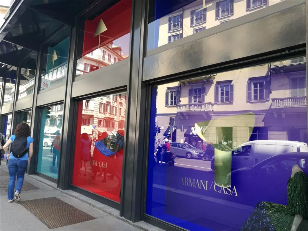 较之2017年4月该店开张时的情形相比,今年展厅的面貌又已焕然一新。店面一层的十六扇大橱窗统一运用红、紫、蓝三色装饰,其色彩之大胆夸张用“堪称米兰威尼斯一绝”形容也不算过分。