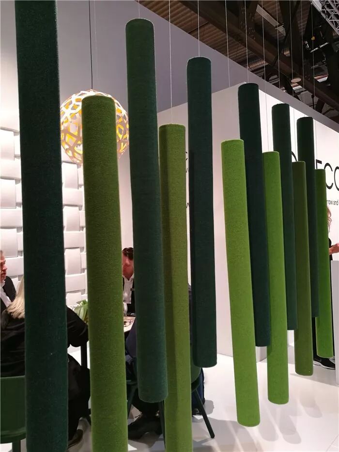 图:绿色的悬吊式竹管屏风仿佛为白色的洽谈区吹起一股鲜风,用设计表达大自然的吸引力法则。