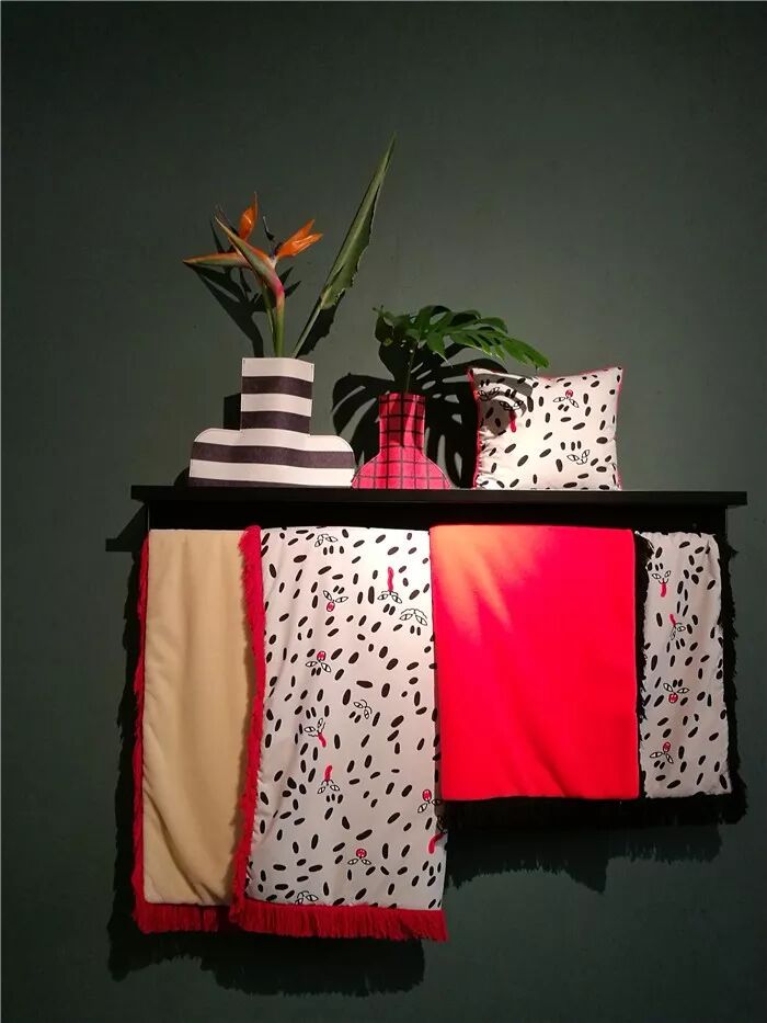 Euena Castaño这样跟我这样诠释她的设计创想:“左边的冷色是我所认为的夜晚的森林,一切带有蓝色的特质却不仅蓝色的单一,它们是神秘的象征,亮黄色则是我所想象中的森林里的动物色,蜥蜴或鹦鹉一类。右边的色彩灵感则源于我对火山爆发的色彩想象,它们热烈燃烧,就像不同明度的橙红。这个产品系列的名字就叫‘丛林’,我喜欢运用鲜艳的色彩及色彩的明暗对比度来表达自然的丰富特质,塑造一切可能的形状以及在想象的世界里我可以如何打破边界。”