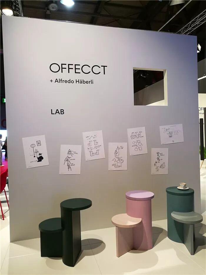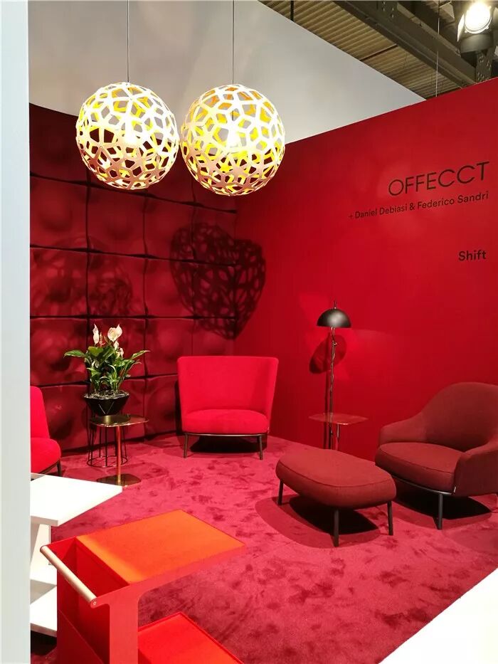 在北欧风格热行的极简主义设计风潮中,人们对北欧家具已形成既定设想:简约、黑白灰棕及浅粉/绿。毫无疑问来自瑞典的OFFECCT不会违背它所归属的设计主流,所以它的展馆主入口以黑白灰为主调,但却在左右两个侧门尽情发挥一切皆有可能的色彩创想,预示北欧风潮即将拥抱新的可能。