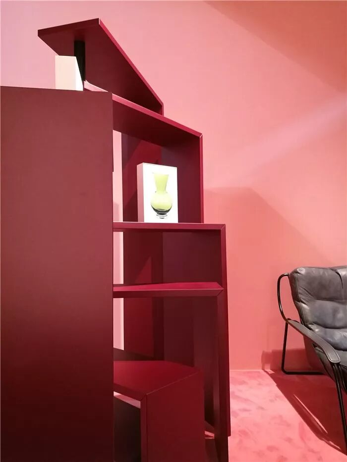 图:PEDRALI的粉红BUDDY(伙伴)系列以暗红色墙面为背景,灰色用于点缀。