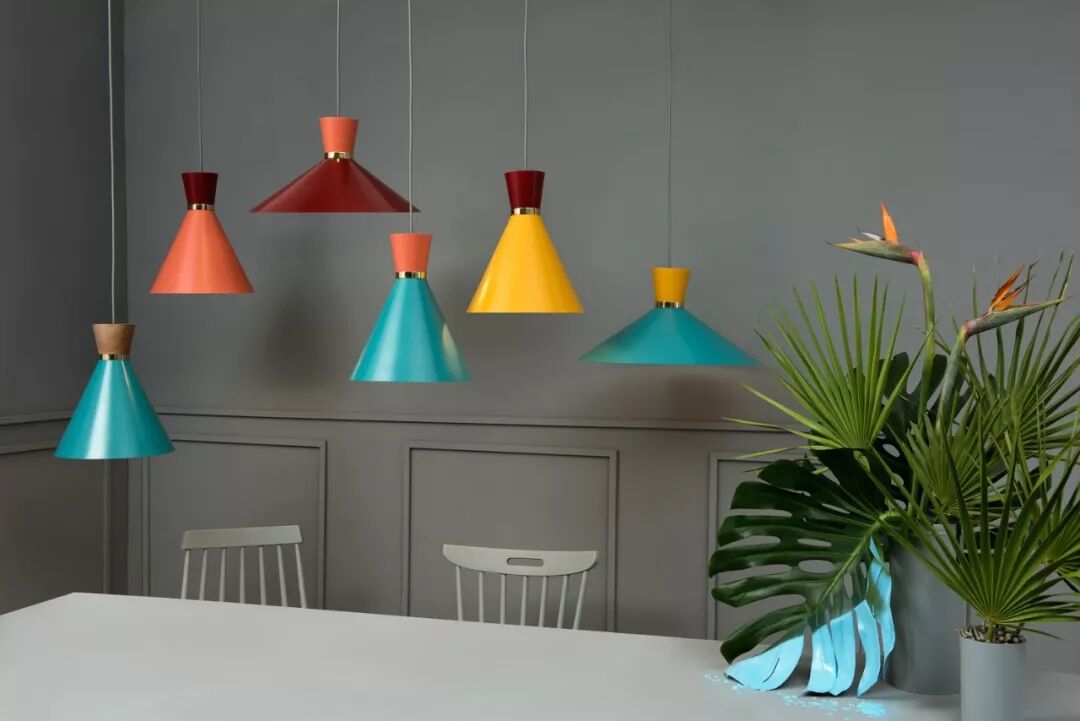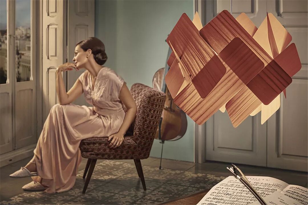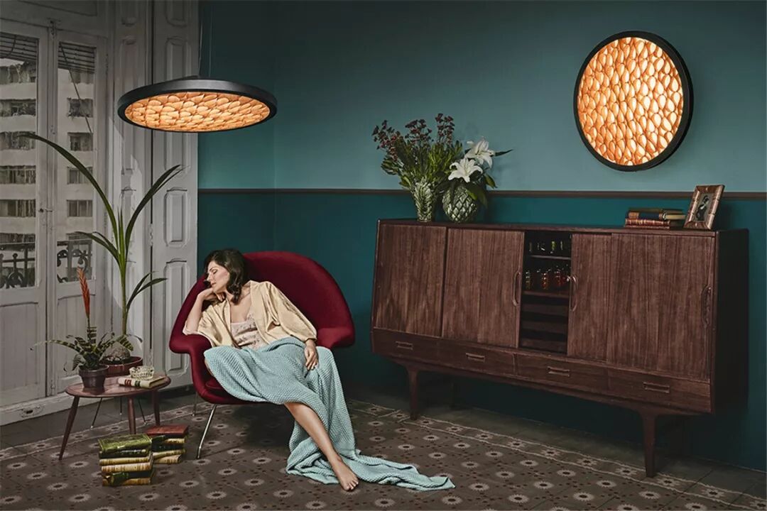 LZF Lamps专业生产薄木片灯具,创造出通过使用重叠薄木片矩形方块使光漫射的新方法。Masquespacio负责艺术方向,包括颜色的选择与灯具的展示等。灯具本身由LZF设计。
