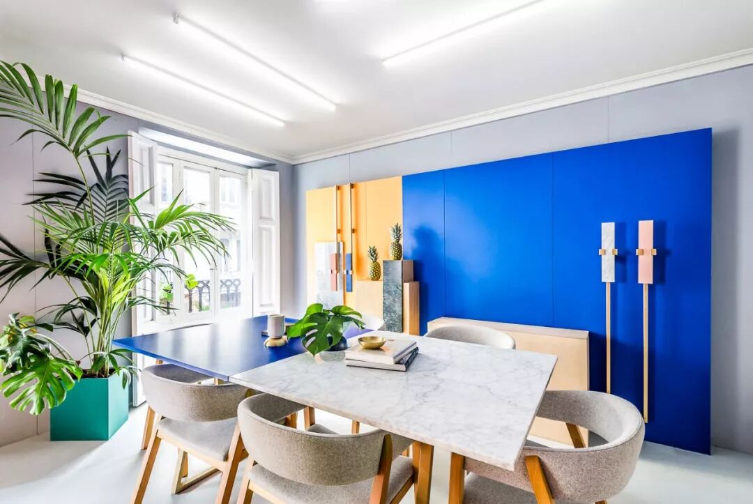 这是Gnomo生活馆迁址到鲁萨法区的新店,设计师保留了空间80年代的装饰风格,并以现代的手法将白色的墙壁、蓝色楼板、青色楼梯、优雅的花岗岩地板和谐搭配在一起,点缀怡人的绿植、明快的马卡龙色系与简约的线条,创造了一个活跃有趣的环境,同时保持视觉感官的良好秩序,使一个商店成了一个不断发生着新故事的、备俱创造性的空间。
