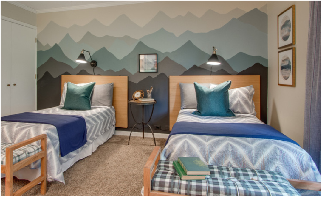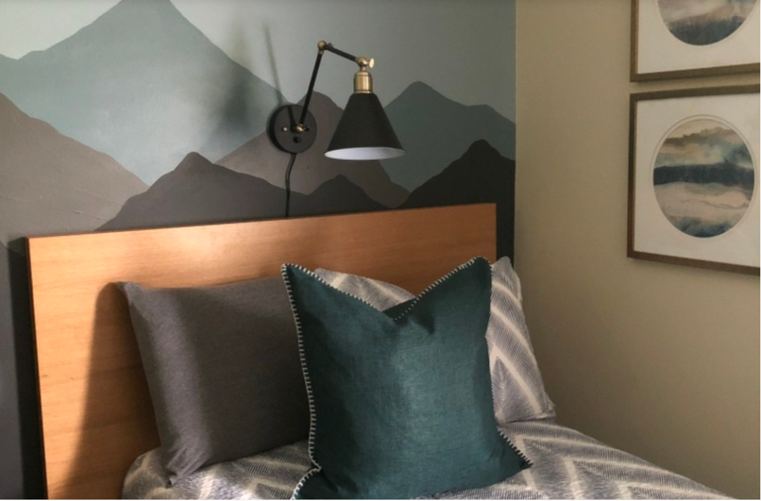 底部的山脉颜色很暗(几乎是黑色的),但是不用担心,床和床头板会遮盖住大部分的墙面。