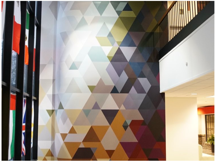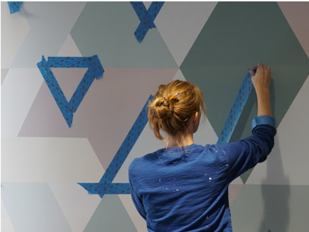 整幅壁画巧妙地结合了本杰明摩尔涂料不同颜色和不同光泽度来进行设计,最终呈现出现代、立体的效果。